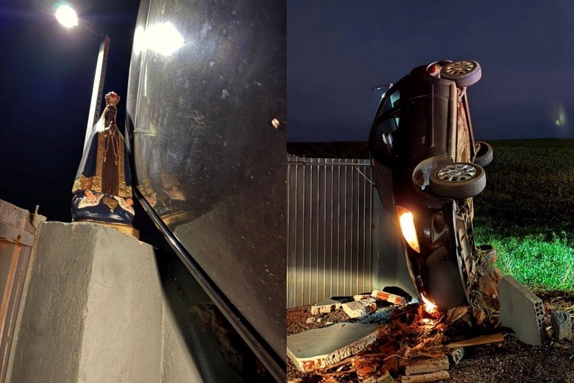Cotidiano 09/12/2025 às 09:18 Vereadora sofre acidente e carro para diante de imagem de Nossa Senhora