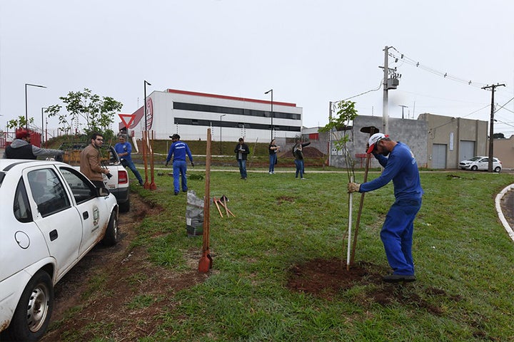 Na terça foi a vez do trevo na entrada do Parque Jabuticabeiras receber mudas de ipês amarelo e branco, bem como a Praça Princesa Isabel, rotatória no entroncamento entre a avenida Rio Grande do Norte e a rodovia PR-580 (saída para Serra dos Dourados).