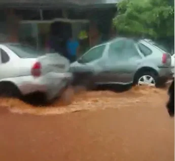 A rua Peabiru, no centro de Cruzeiro do Oeste, foi totalmente coberta pela água da chuva que caiu na cidade nesta quarta-feira (21), conforme você pode ver no vídeo acima. Um motorista que passava pelo local gravou a água barrenta cobrindo o asfalto e até mesmo invadindo lojas.