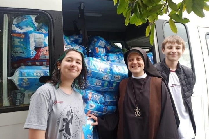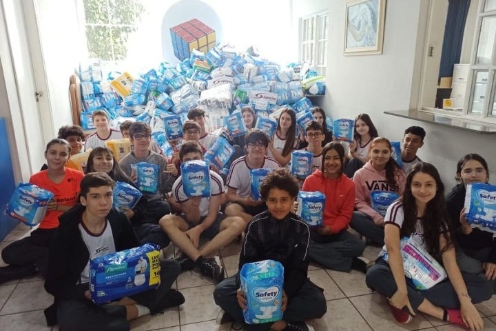 Alunos do Sapiens arrecadam ‘montanha’ de fraldas geriátricas para entidades de Umuarama