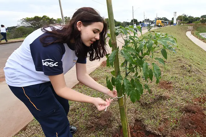 O plantio das mudas no lago envolve as equipes de arborização e de paisagismo da Secretaria do Meio Ambiente e conta com a participação de alunos do 1º ano do Ensino Médio Integrado do Serviço Nacional Aprendizagem Comercial (Senac).