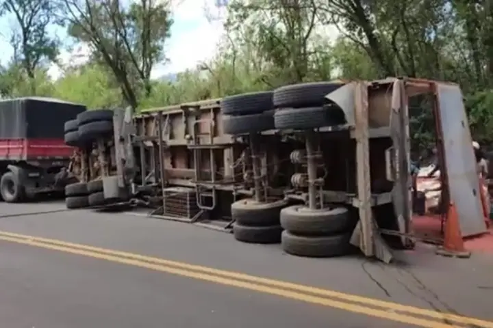 O acidente aconteceu após o condutor do veículo de grande porte perder o controle da direção, sair da pista e tombar uma das carretas na rodovia, derrubando parte da carga no asfalto e sendo saqueado por índios logo após o ocorrido.