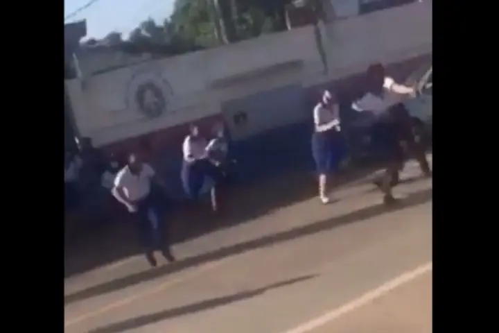 Em um vídeo reproduzido pelas redes sociais é possível ver vários alunos fugindo desesperados do atentado pelo portão da frente do colégio.