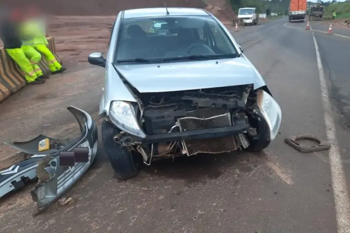De acordo com a polícia, o veículo foi recuperado durante um patrulhamento das equipes pela rodovia. Ao chegar no trecho, os policiais encontraram o carro com a frente danificada, resultado de uma colisão contra uma mureta de concreto que ali havia.