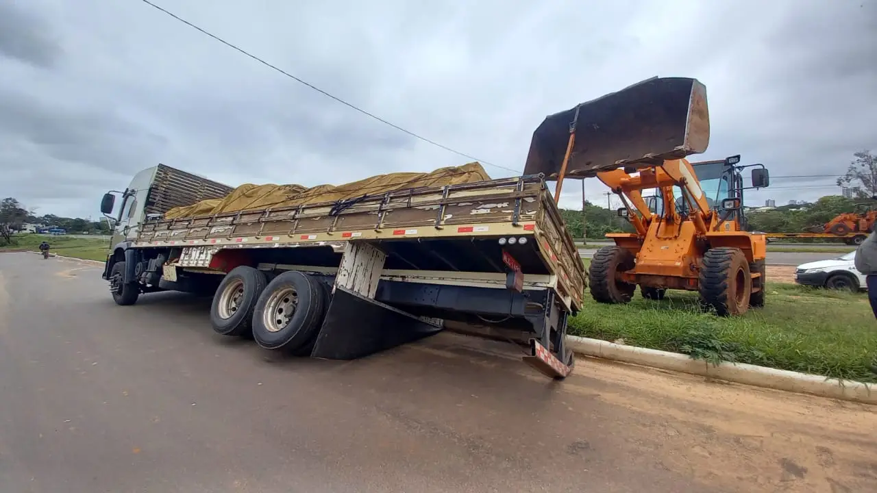 A carga será retirada para facilitar a remoção do caminhão dentro do buraco.