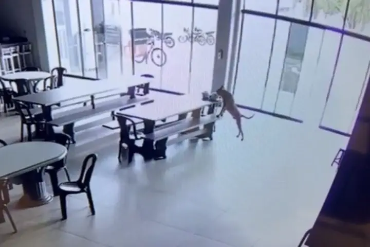 Após pegar o almoço, o cachorrinho fugiu rapidamente sem ser percebido. A ação só foi descoberta após o funcionário descobrir a ação cômica através do registro das câmeras de segurança.