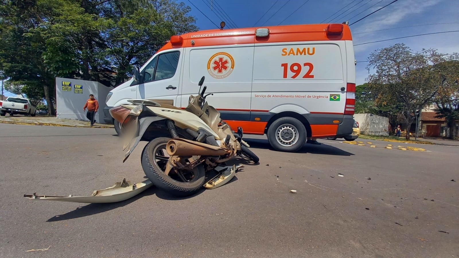 Jovem fica ferido após colisão entre carro e moto na Zona II, em Umuarama