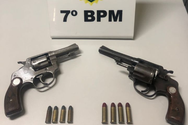De acordo com a PM, um dos detidos tem sete passagens pela polícia. Os crimes pelos quais responde não foram informados. Junto com os homens foram encontrados dois revólveres.