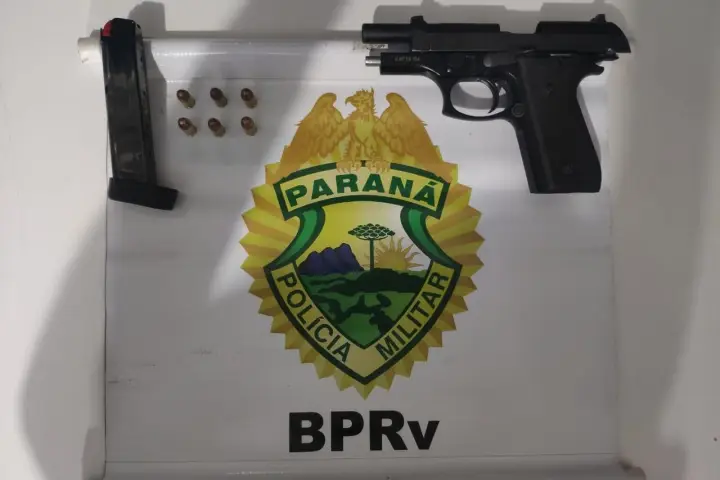 A Polícia Militar Rodoviária prendeu um condutor e uma passageira de VW Golf com placa de São Bento, na Paraíba, que foram flagrados em posse de uma pistola calibre .380 pela PR-323, entre Iporã e Cafezal do Sul. Além dos suspeitos, haviam três crianças dentro do automóvel.