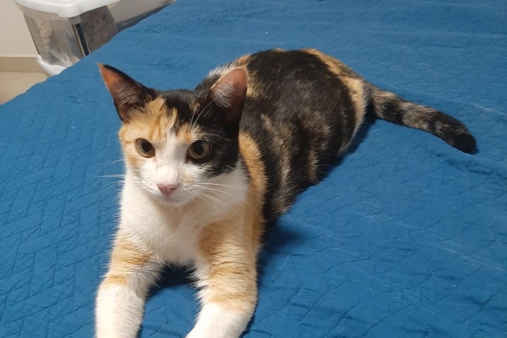 Biscoito é uma gatinha fêmea com pelagem malhada, nas cores amarelo, preto e branco. Qualquer informação sobre a felina pode ser repassada à Rosana através do telefone/WhatsApp (44) 99964-1588.