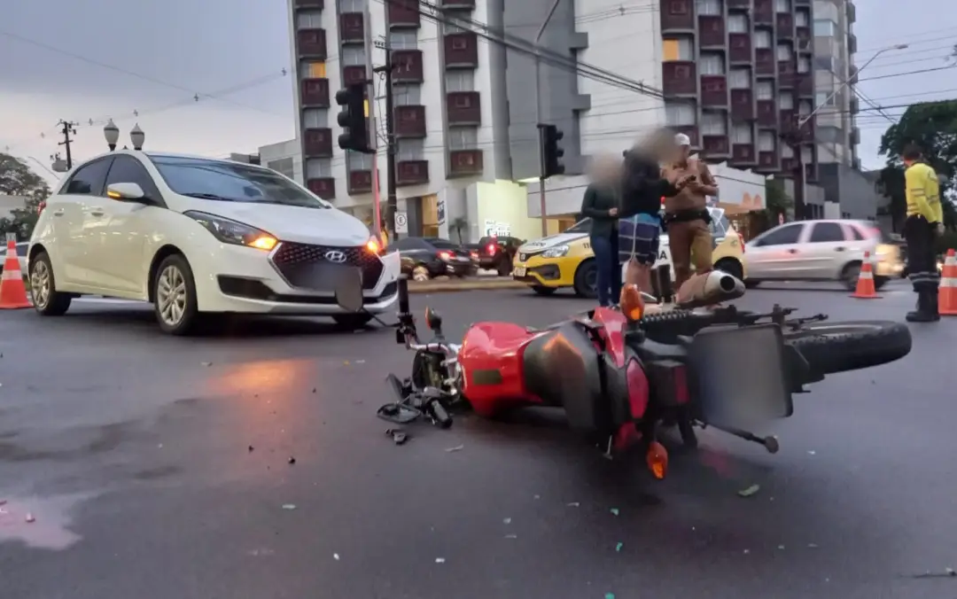 Um jovem de 20 anos foi socorrido pelo Samu após se envolver em um acidente de trânsito por volta das 18h desta quarta-feira (5) em Umuarama. A colisão ocorreu entre um carro HB20 branco e uma motocicleta Honda Fan 150 vermelha.