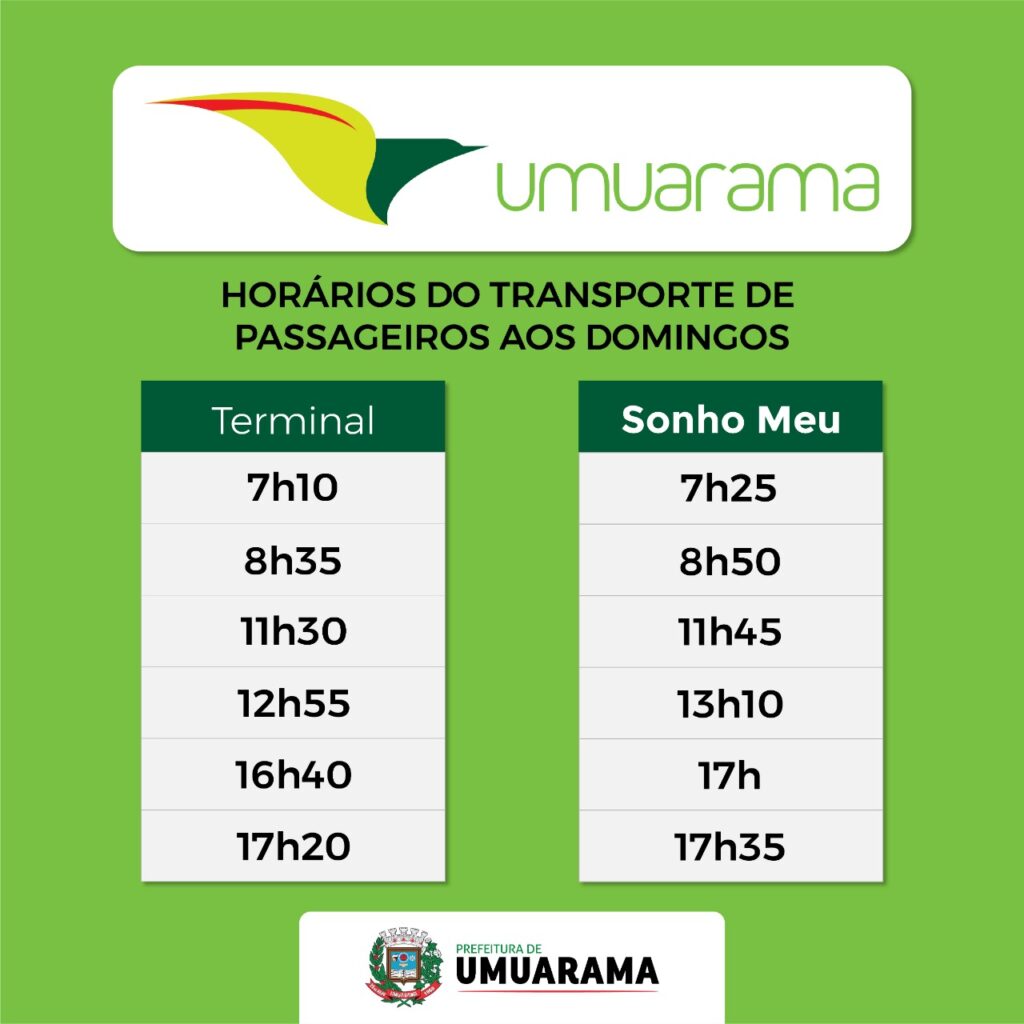 Com 10 linhas circulando durante os domingos, a Viação Umuarama – concessionária do transporte coletivo urbano – atenderá cerca de 30 bairros e localidades como a nova rodoviária e o shopping. Também haverá horários para o distrito de Lovat.