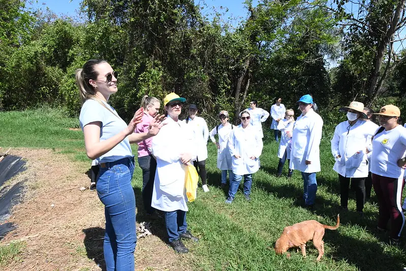 A turma, formada por 36 alunos que estão concluindo o curso, foi acompanhada pelas professoras Bernadete Del Mônaco Avelar e Maristela de Azevedo Ribeiro na atividade de educação ambiental, na disciplina de Vigilância em Saúde.