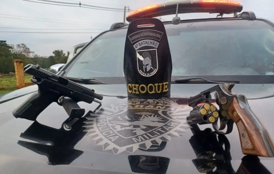 Com eles foram apreendidas duas armas de fogo: um revólver calibre 38 e uma pistola. O veículo Hyundai I30 foi furtado em Mandaguari e utilizado em vários crimes.