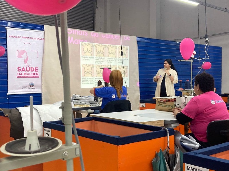 Na manhã de sexta-feira (14), por exemplo, o programa Saúde da Mulher foi apresentado na Cama In Box para mais de 140 operárias. A ginecologista e obstetra Ana Carolina Augusto, do hospital Norospar, falou sobre a importância de as mulheres realizarem exames preventivos, que podem ser agendados nas unidades de saúde, mas também sobre o autoexame das mamas.