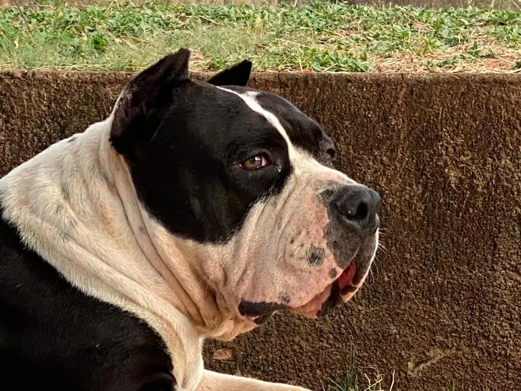 O cão, bastante dócil, é da raça American Bully, muito parecida com a pitbull. Quem tiver informações sobre o peludo pode entrar em contato com o tutor, Sérgio, pelo fone (44) 99916-6968.