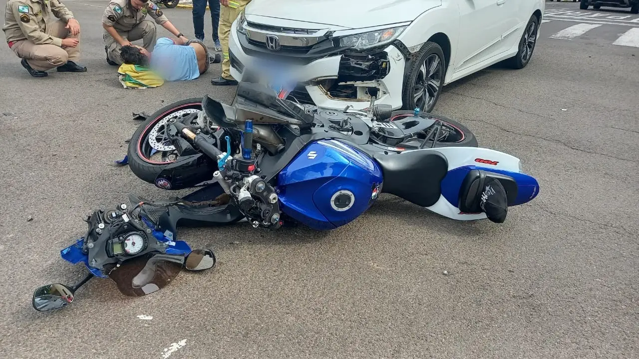 Um acidente entre uma motocicleta e um carro foi registrada por volta das 15h30 desta terça-feira (18) na região central de Umuarama. O condutor da moto teve ferimentos e foi atendido pela equipe do Samu.