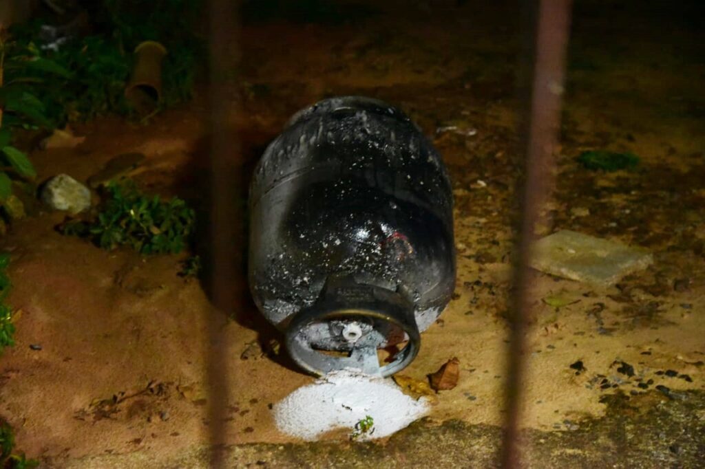 No momento ninguém soube informar como as chamas começaram, no entanto, um botijão de gás foi atingido.
