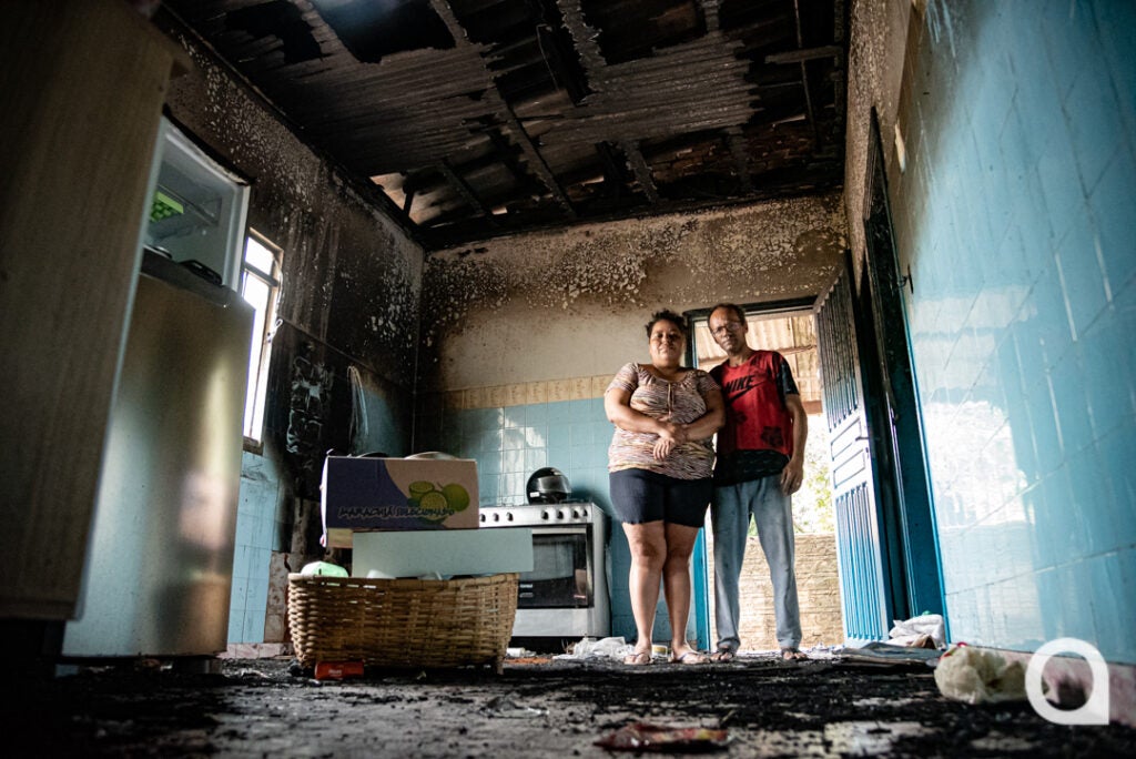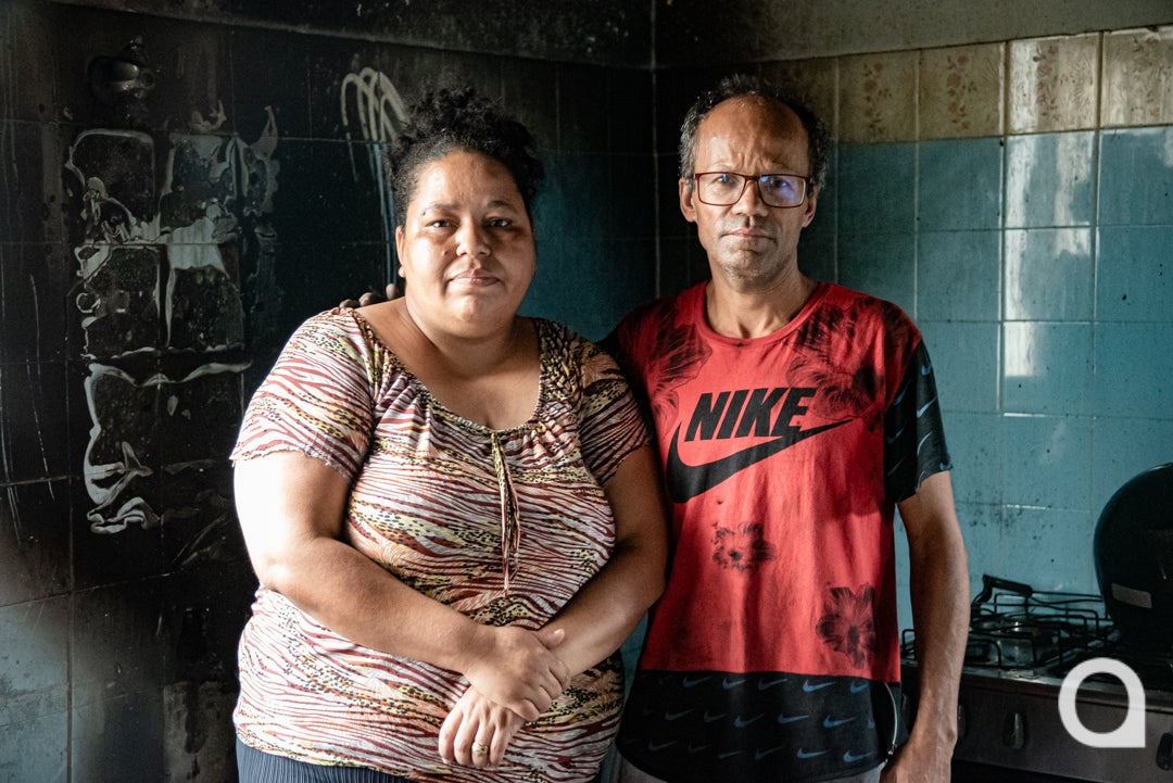 O casal Everaldo Torres de Lima, de 47 anos, e Silvana Rodrigues de Campos Lima, de 37 anos, tiveram a casa onde residiam de aluguel com os dois filhos, parcialmente destruída por um incêndio na noite da última quarta-feira (19). O imóvel fica na rua Mascarenhas de Moraes, perto da Paróquia São Paulo Apóstolo.