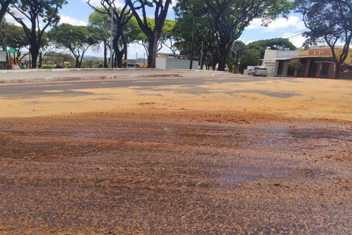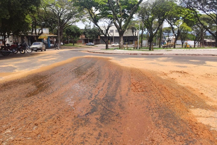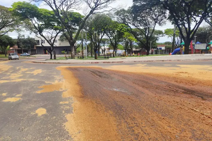 Umuarama: Caminhão derruba óleo na praça Tamoio e gera transtorno para motociclistas