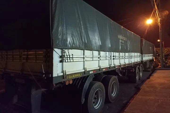 Durante patrulhamento, os policiais avistaram uma carreta parada na estrada. Ao se aproximarem, alguns homens que estavam próximo a carreta fugiram a pé em meio a mata.