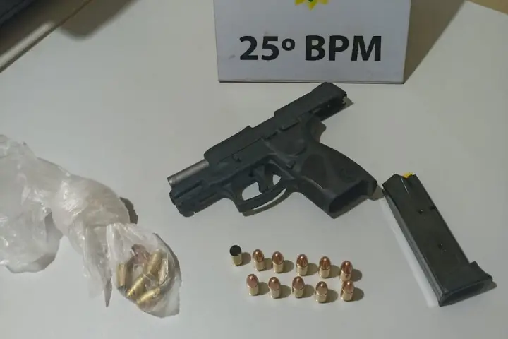 Em busca pessoal, os policiais encontraram munições calibre 9mm em seu bolso, além de uma pistola do mesmo calibre dentro do automóvel do suspeito. A equipe também havia recolhido várias cápsulas deflagradas na via pública, incluindo um projétil que ficou alojado na parede da residência da vítima.