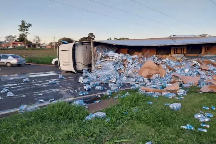 Dezenas de pessoas saquearam um caminhão carregado com cervejas que tombou na última quarta-feira (26), no Contorno Sul, em Maringá.