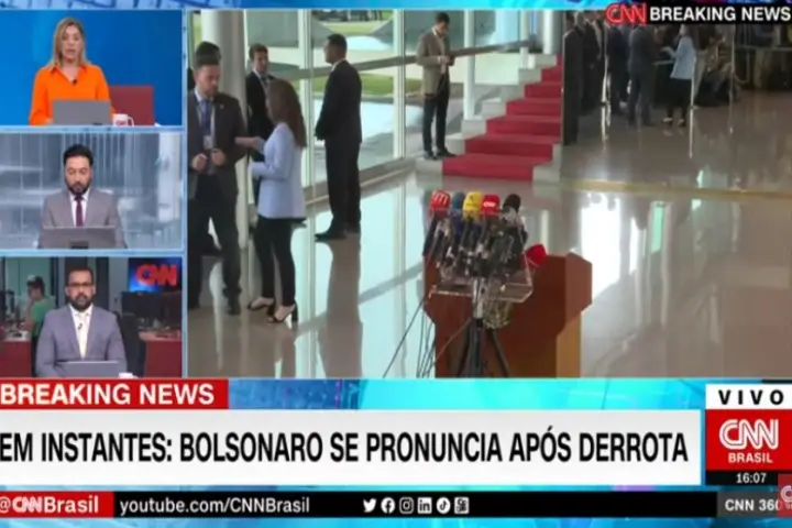 A Secretaria Especial de Comunicação Social informou que Jair Bolsonaro (PL) fará pronunciamento na tarde desta terça-feira (1º), no Palácio da Alvorada, em Brasília.