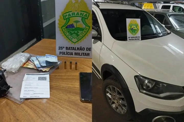 A situação teve início após um morador entrar em contato com a PM dizendo que estava retornando para casa quando percebeu que estava sendo seguido por um VW Cross de cor branca. As equipes então se deslocaram e encontraram o suspeito e o automóvel apontado.