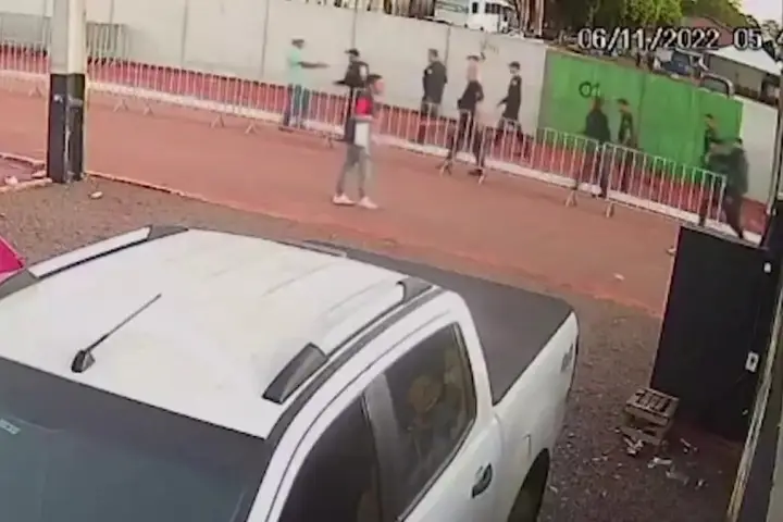 Câmeras de segurança registraram o momento em que Peterson Barbosa, de 36 anos, foi morto a tiros na manhã deste domingo (6), após tentar separar uma briga durante a Expo Brasilândia do Sul 2022.