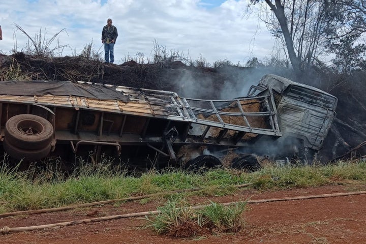 Os dois veículos trafegavam em sentidos opostos, e segundo informações do motorista da carreta, ele ainda teria tentado desviar do Gol, porém não conseguiu e acabou tombando fora da pista. A carreta pegou fogo e ficou completamente destruída. Ele foi socorrido pelo Samu (Serviço de Atendimento Móvel de Urgência) com queimaduras nos braços.
