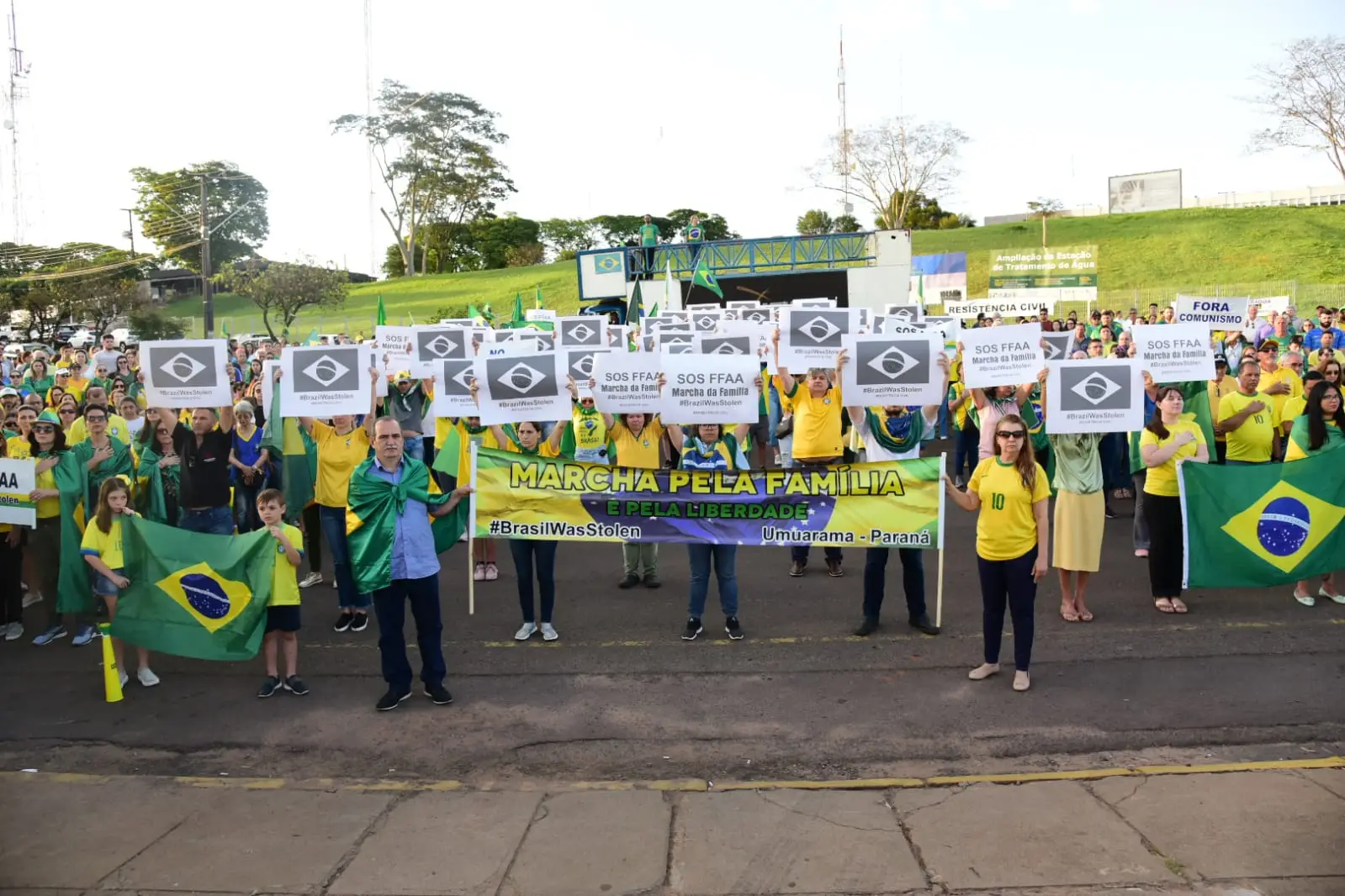 Manifestantes contrários ao resultado das eleições presidenciais do último dia 30 realizaram mais um ato em Umuarama nesta segunda-feira (7). Por volta das 16h o grupo fez a Marcha da Família pela Liberdade.