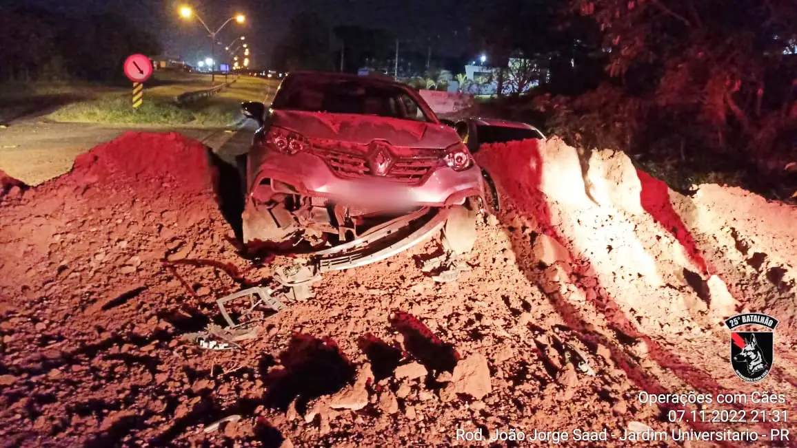 Por fim, a PM também informou que o condutor do veículo envolvido no acidente transitou na contramão (sentido Umuarama – Cruzeiro do Oeste) e colidiu com a terra. A equipe que estava próxima coletou os dados que serão repassados à Polícia Rodoviária. E a PM informou que no local há sinalização com cones.