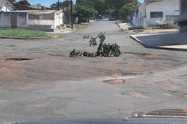 Segundo ela, quase todas as ruas do bairro estão em condições precárias e em algumas os moradores até colocaram ganhos de árvores ou restos de construções para sinalizar os buracos. “Já vieram fazer recapeamento no começo ano, mas na primeira chuva arrancou tudo de novo”, lembra ela.