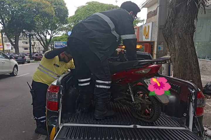 Valquiria Oliveira Oli estava de moto quando um pneu acabou furando. Sem ter como seguir, ela acabou parando em um local proibido, na Avenida Paraná, umas das principais e mais movimentadas vias do município.