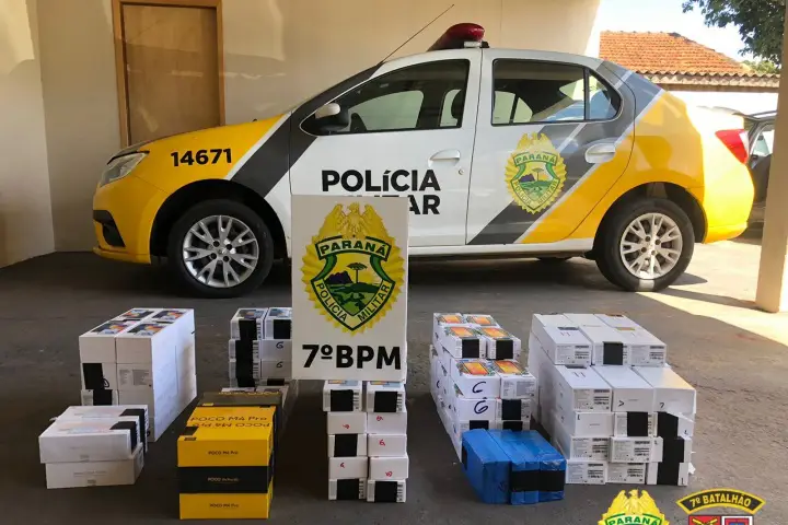 A Polícia Militar (PM) apreendeu, na manhã desta terça-feira (8), em Tuneiras do Oeste, 158 celulares de diferentes marcas que foram contrabandeados do Paraguai.