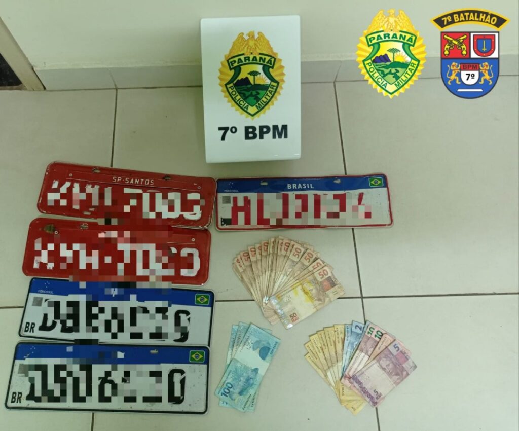 A Polícia Militar (PM) de Cidade Gaúcha apreendeu cigarros contrabandeados, dinheiro e placas falsas, além de prender um homem. A situação aconteceu por volta das 10h20 desta terça-feira (8).
