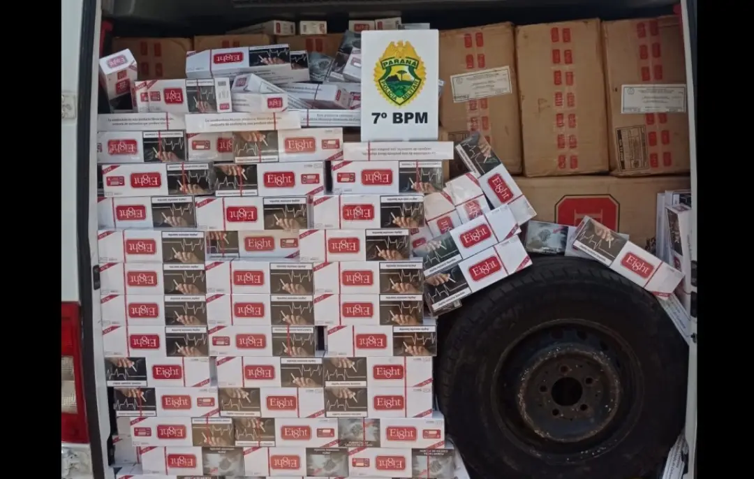 A Polícia Militar (PM) de Cidade Gaúcha apreendeu cigarros contrabandeados, dinheiro e placas falsas, além de prender um homem. A situação aconteceu por volta das 10h20 desta terça-feira (8).