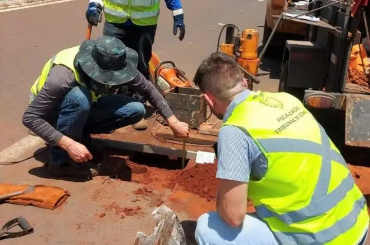 A fase de coleta de amostras do asfalto, para análise em laboratório, já foi concluída, em dois trechos da rodovia: entre os municípios de Paiçandu e Doutor Camargo e entre Doutro Camargo e o início planejado da variante do Rio Ivaí. A extração das amostras – sob a supervisão de dois servidores da CAUD – e a análise dos materiais em laboratório são feitas pela Concresolus, empresa especializada contratada pelo TCE-PR via licitação para realizar esse trabalho.