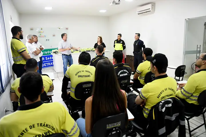 A Secretaria de Segurança, Trânsito e Mobilidade Urbana entregou novos conjuntos de uniformes para os agentes da autoridade de trânsito na tarde da última terça-feira (8), em uma solenidade rápida na sede da repartição.