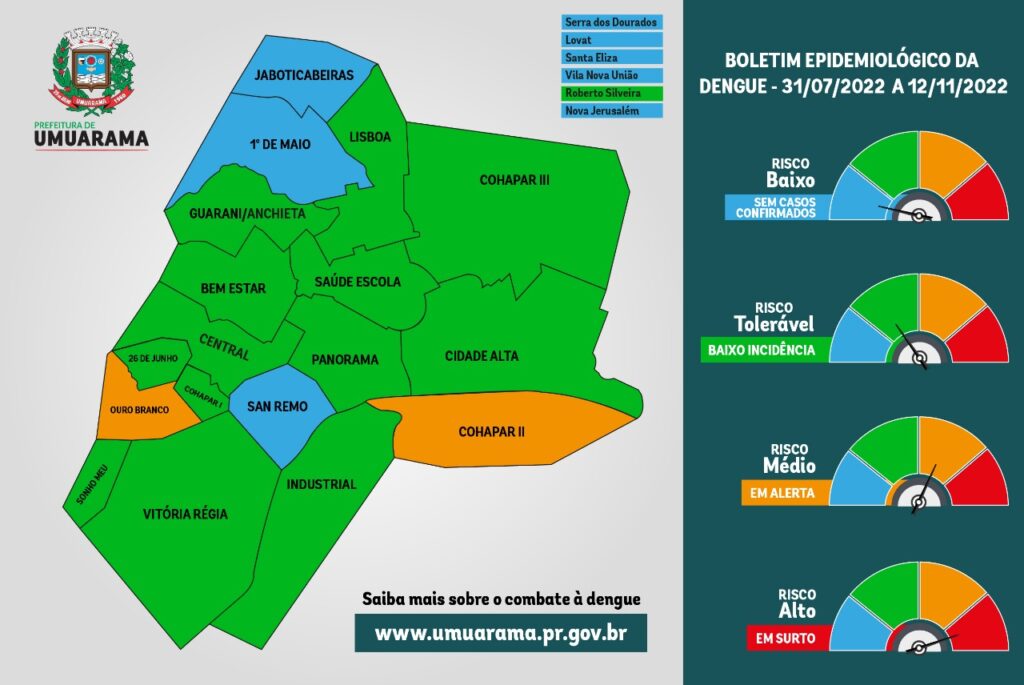 Desde o início do período de acompanhamento 2022/2023 não houve óbitos nem casos graves de dengue em Umuarama.