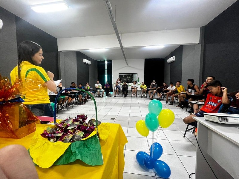 A coordenadora da Divisão da Juventude, Roselene de Souza, disse que os alunos – participantes das diversas oficinas oferecidas pelo Ceju – entraram no clima do futebol, da seleção e da competitividade que marca as copas. “Fizemos uma linha do tempo com as seleções vencedoras, apresentação de embaixadinhas, decoração verde-amarela e vários alunos vieram com a camisa da seleção”, acrescentou. “E todos ganharam bombons com mensagens”, completou.