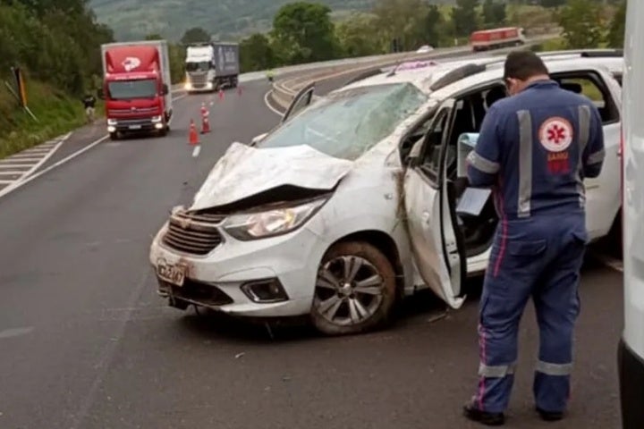 Paraná: Paciente que seria internado morre após capotamento de carro da Saúde na BR-376
