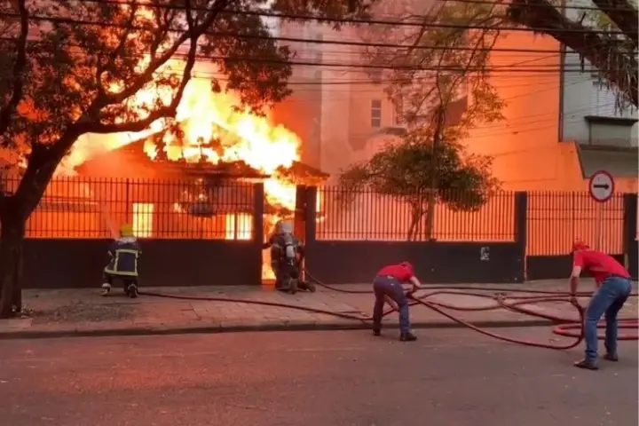 Uma pessoa teria visto o homem ateando fogo no imóvel de madeira. Em poucos minutos o pensionato foi tomado pelo incêndio. Câmeras de segurança instaladas em residências das proximidades gravaram o suspeito deixando o local.
