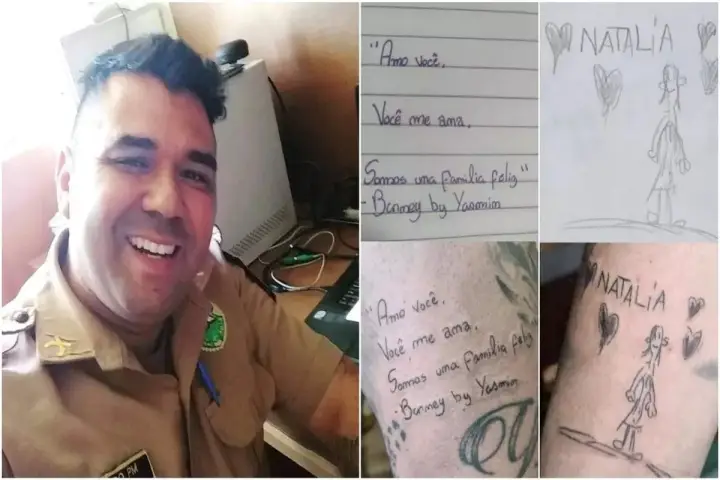 Recentemente o PM havia feito duas tatuagens para homenagear às filhas. Apaixonado pela família, eternizou na pele uma mensagem da filha primogênita e um desenho da caçula.