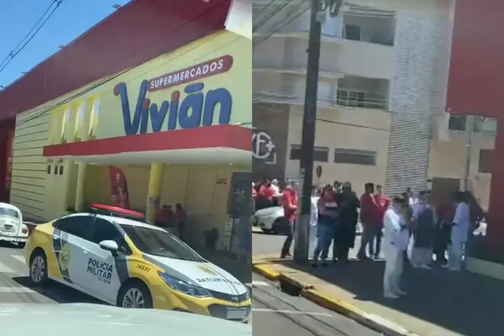 Diante da suposta ameaça, várias pessoas incluindo funcionários e clientes saíram de dentro do supermercado com medo de um possível tiroteio.