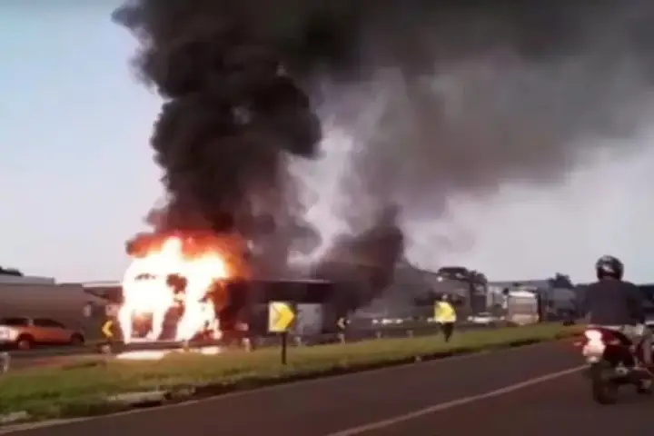 Um ônibus com turistas do interior de São Paulo pegou fogo no final da tarde desta terça-feira (15), em uma rodovia na região oeste do Paraná.