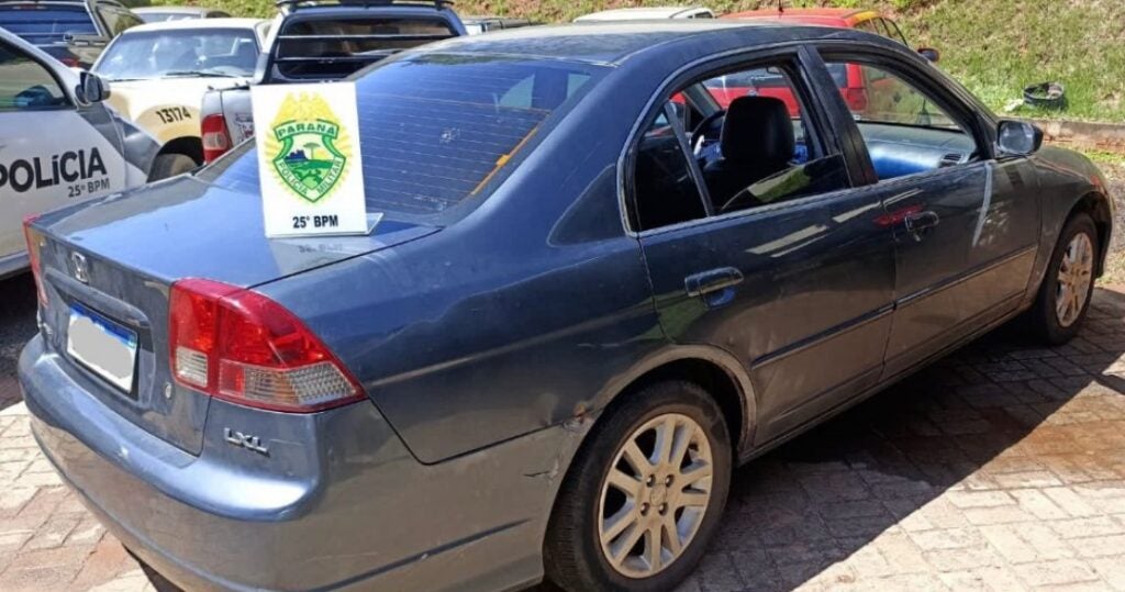 A PM divulgou uma nota informando que um homem de 77 anos estava dirigindo um veículo Honda Civic de cor cinza. O carro estava carregado com cerca de 300 maços de cigarros de origem estrangeira.