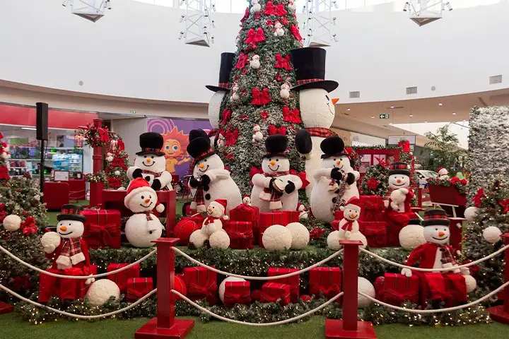 A decoração conta com túnel iluminado, árvore gigante do Boneco de Neve, gira-gira acessível, banda dos Bonecos de Neve, balanço juvenil, trenó instagramável, trono do Noel (com poltrona para pets) – o Papai Noel estará no shopping todos os dias, das 15h às 21h.