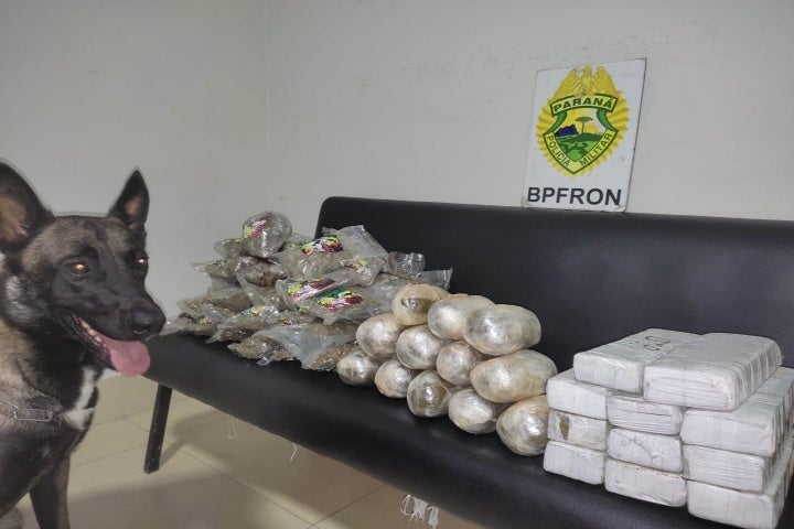 Policiais do Batalhão de Polícia de Fronteira (BPFron) apreenderam neste sábado (19), 7,6 kg de maconha, 7 kg de Skank e 6,2 kg haxixe, em Umuarama.
